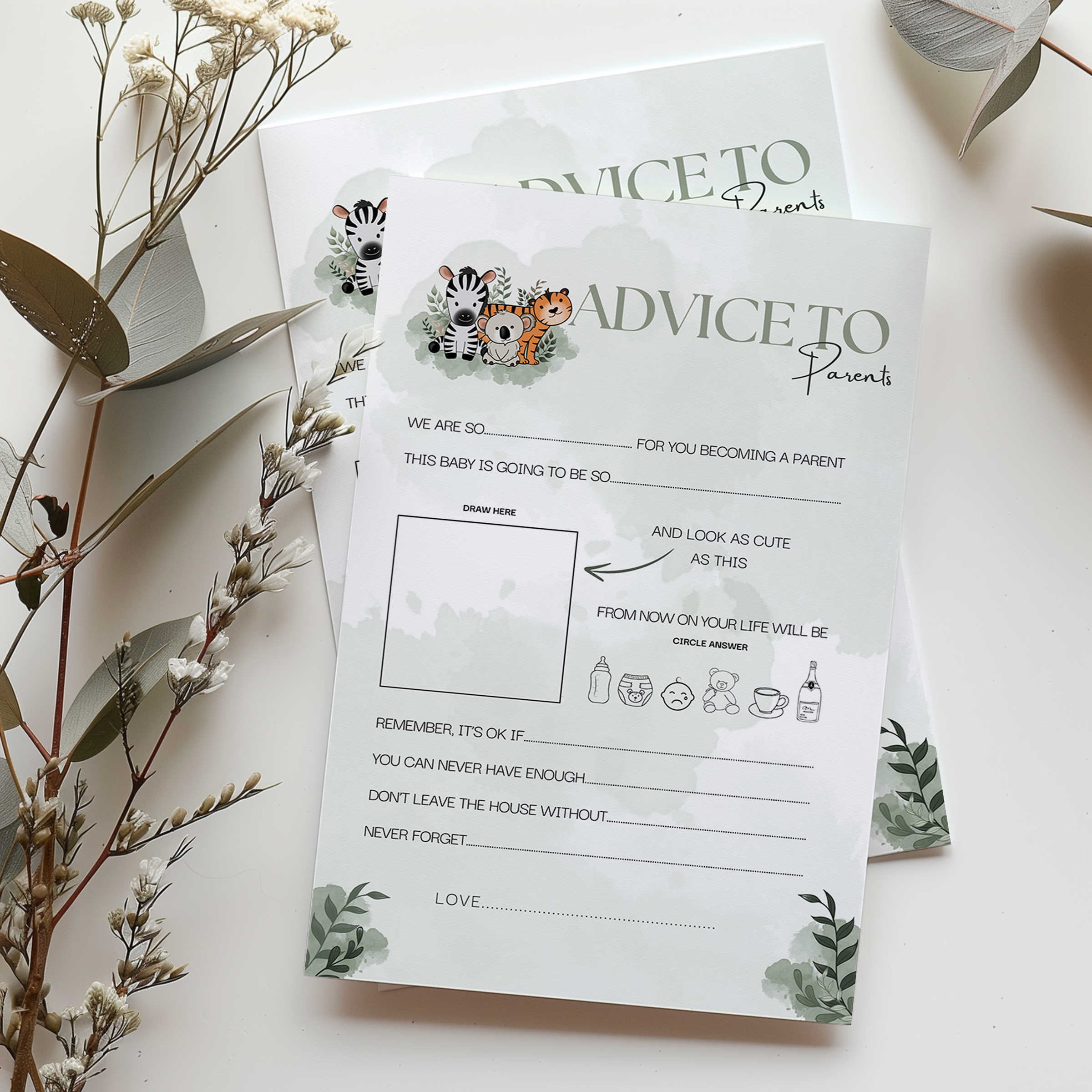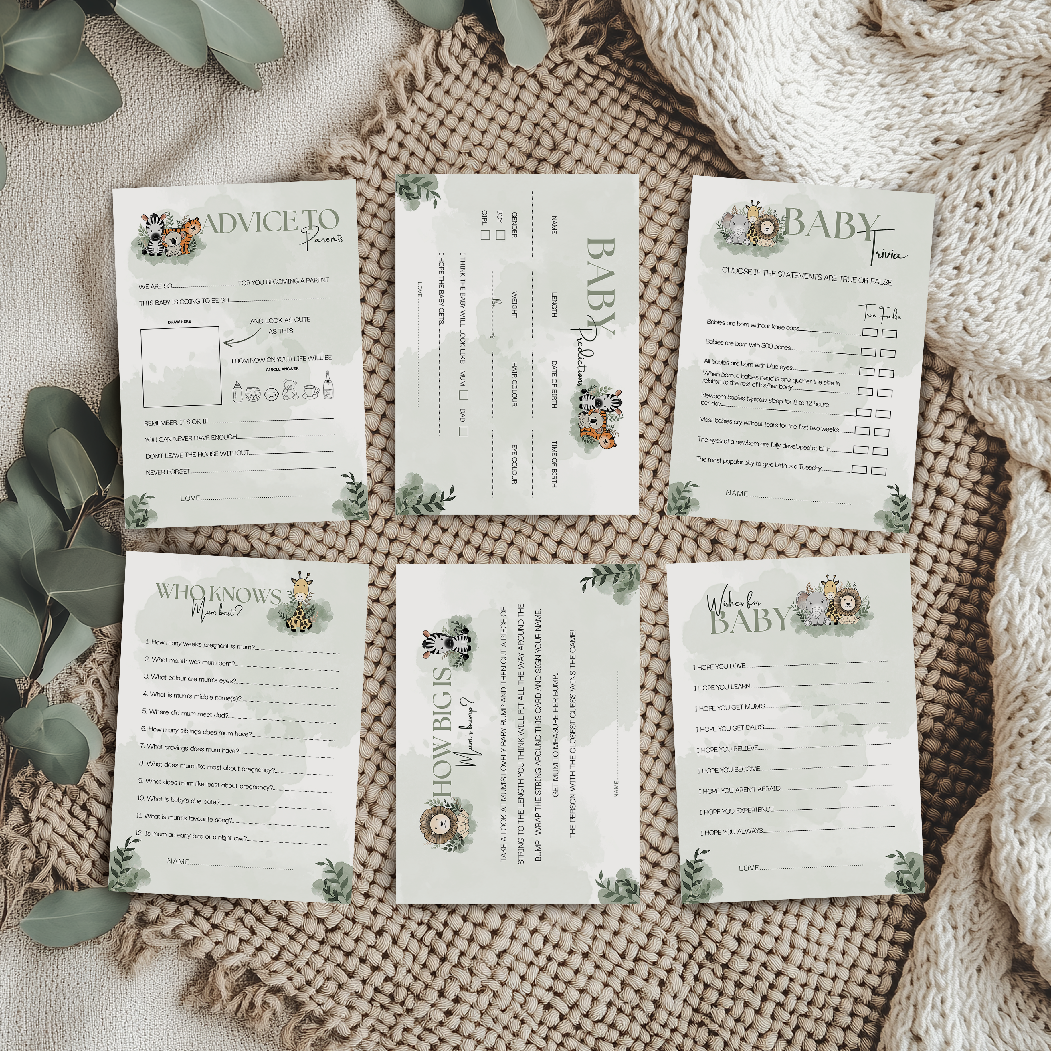 Safari Collection Baby Shower Games includes:
