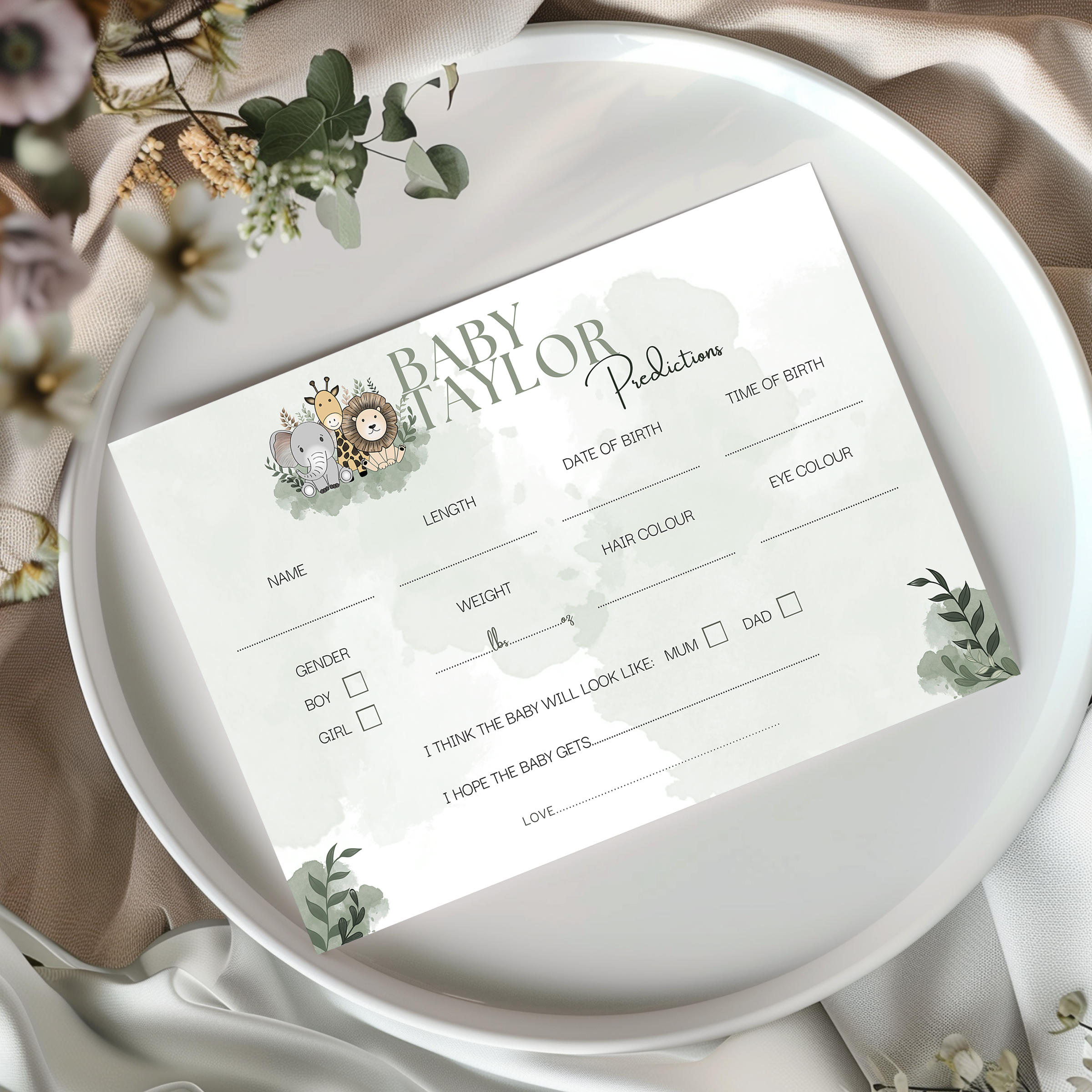 Personalised ‘Baby Predictions’ baby shower game cards which are the perfect addition to your next baby shower party, to give the mum and dad to be something to remember the occasion for many years to come.